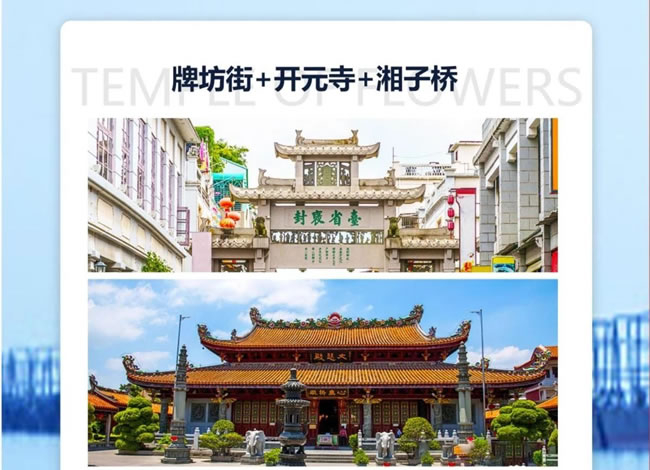 早餐后游覽【開元寺】(游覽時間不低于30分鐘)位于鯉城區(qū)西街,是中國東南沿海重要的文物古跡,也是福建省內規(guī)模較大的佛教寺院。該寺始創(chuàng)于唐初垂拱二年(686年),初名蓮花道場,開元二十六年(738年)更名開元寺?,F(xiàn)存主要廟宇系明、清兩代修建,南北長260米,東西寬300米,占地面積78000平方米?!疚鹘帧浚ㄓ斡[時間不低于30分鐘)是泉州較早開發(fā)的街道和區(qū)域,早在宋朝,它就已經象征了泉州的繁榮,它還是泉州市區(qū)保存較完整的古街區(qū),保留著大量具有歷史原貌的建筑。前往前往【蟳埔村】(游覽時間不低于60分鐘),蟳埔村位于福建省泉州市豐澤區(qū)東海社區(qū)的一條小漁村,這里居住的是古時阿拉伯人的后裔。這里的女人們頭上戴著鮮花做的漂亮的簪花圍,戴著丁香耳墜,穿著大裾衫、寬腳褲,形成了一道獨特的風情,她們和惠安女、湄州女一起并稱福建三大漁女,這里還有別具特色的民居“蚵殼厝”。體驗潯埔村地方民俗,風土人情?!九抠浰筒寤ǎw驗潯埔漁村民俗】隨后前往平潭酒店入住休息。