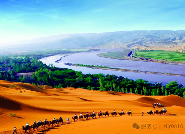 前往中國十大最好玩的地方之一的【沙坡頭】(游覽約2.5小時左右)這里集大漠、黃河、高山、綠洲為一體,地貌奇特,沙河相依,這里大漠黃河天工巧成,極具江南景色之秀美,又兼西北風光之雄奇,被旅游界專家稱為“世界壟斷性旅游資源”。