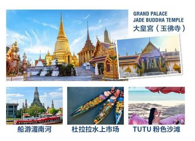 1.【大皇宮 +玉佛寺】早餐后,前往泰國標志建筑【大皇宮】,是泰國歷代王宮保存最完美、規(guī)模最大、最有民族特色的王官,被稱為“泰國藝術(shù)大全 ” ,與大皇宮相鄰,是全泰國唯一沒有僧侶住持的佛寺,供奉著一座價值連城的國寶---玉佛 ,是泰國的三大國寶之一。2.【長尾船游湄南河】乘坐泰國獨有的長尾船,暢游在湄南河中。既可以欣賞水上人家又可以放松心情,又可以欣賞到曼谷獨有的湄南河景色、鄭王廟 。河岸兩邊的景色和風光一定會給您帶來不一樣的體驗。3. 【廊1919】曼谷新晉潮人打卡低,是由必沙布家族里的高官波山舒巴本先生 1850 年型建的 。那時是火船運輸最 鼎盛的時期,船只往來川流不息。火船廊除了作為碼頭之外,還建有一座媽祖廟,以便出海的船員和附近的居民祭拜。1900 年期間,這里逐漸改為辦公室、住家和倉庫。員工宿舍在樓上,樓下則為辦公室 。在這期間,這里也曾作為中 國商人協(xié)會的中心,對華人商業(yè)發(fā)展起了積極的推動作用。4.【國際人妖秀】 (游覽時間不少于 60 分鐘) ,欣賞佳麗名媛們傾情奉獻給大家 的精湛演繹,陶醉于紅袖飄舞、婀娜 多姿、千嬌百媚的藝術(shù)神韻而會感嘆她們的百變神奇。溫馨提示 : 參觀大皇宮玉佛寺時男士須穿長褲,女士需穿過膝長裙,女士不可穿露背、吊帶上衣及超短裙。