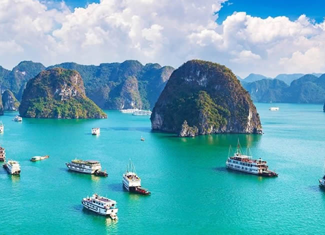 早餐后,乘車前往巡州島度假區(qū)、欣賞海岸風(fēng)光,后乘越南特色紅木游船漫游世界八大自然遺產(chǎn)之一的“海上桂林” —下龍灣 (游覽時間約 4H) (在 1500 多平方公里的海面上、聳立著 3600 多座大小不一、千姿百態(tài)的喀斯特地貌的山石、更以其“海美、山幽、洞奇”三絕而享譽天下) ——觀狗爬山、香爐山、斗雞山等數(shù)不勝數(shù)的風(fēng)景盡收眼底,再從斗雞石出發(fā)游覽下龍灣的精華景點之一【迷宮仙境】 。午餐安排于船上進行用餐,下龍灣亦有小漁船如影相隨,把酒臨風(fēng),去國懷鄉(xiāng)之憂蕩然無存,在天海一色中的游船上大快朵頤的美妙感覺在您的全身悄悄蔓延。午餐后乘坐【快艇】前往【海上天坑】,抵達洞口后換成小木船進入洞內(nèi) ,海上天坑是一個 360 度皆為垂直絕壁的封閉海灣 ,空靈幽閉。湖水清澈見底 ,水平如鏡,在四面高聳徒峭山崖的環(huán)抱中,仿佛給人一種與世隔絕的感覺。游完后前往越南最浪漫、最漂亮的島嶼—【天堂島】, 島上活動 1-2 小時。細白的沙灘上可以玩各種沙灘游戲 (游戲道具自備) ,在指定區(qū)域還可以游泳,登上島嶼的山頂俯視下龍灣海上桂林全景,拍攝您心意的美照,隨后坐船返回碼頭下船 ,告別上帝賜于越南最好的禮物-下龍灣。前往【下龍灣海灘】綿延近千米的下龍沙灘,椰樹成林,碧浪白沙,海水明澈,碧藍天空一望無際,與海水相融相接,長長的海灘宛若一條白色綢帶蜿蜒在海岸邊。沙灘的愜意安然,赤足漫步在海邊上能感受到與浪花熱情的玩耍邀請。晚上可自由閑逛酒吧街,如果你是個Party控,這里絕對是個能讓你盡情奔放的好地方!這里匯聚了當?shù)氐娘L(fēng)俗習(xí)慣、傳統(tǒng)文化,樸素中讓人深深感受到獨特的心靈文化。這就是越南的人間煙火氣,游客們還可以在此體驗“越南版淄博燒烤”--【瓦片燒烤】,用烤爐“現(xiàn)燒炭火”和“一片紅瓦”是它的終極武器!有肉,有越南啤酒,有越南燕窩水,這大概就是最幸福的事~~!!特別安排【觀光車環(huán)游下龍灣】,深入了解下龍當?shù)厣睢?br/>