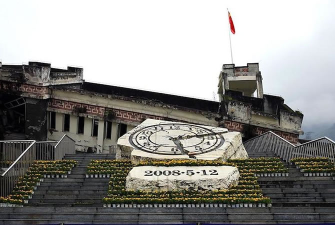 參觀拍照后前往漢旺地震遺址,在汶川地震中,綿竹遭受了巨大災難,尤其是漢旺地區(qū)的沿山地區(qū)和山區(qū),房屋幾乎全部坍塌,基本完好的房屋僅占8%左右。地處漢旺的東方汽輪機廠損失慘重。后將其改建成遺址紀念區(qū),可看到綿竹漢旺鎮(zhèn)、沿山鄉(xiāng)村旅游地震遺址帶,世界最大板房臨時安置區(qū),在漢旺地震遺址區(qū)的“512紀念鐘”前見證歷史。